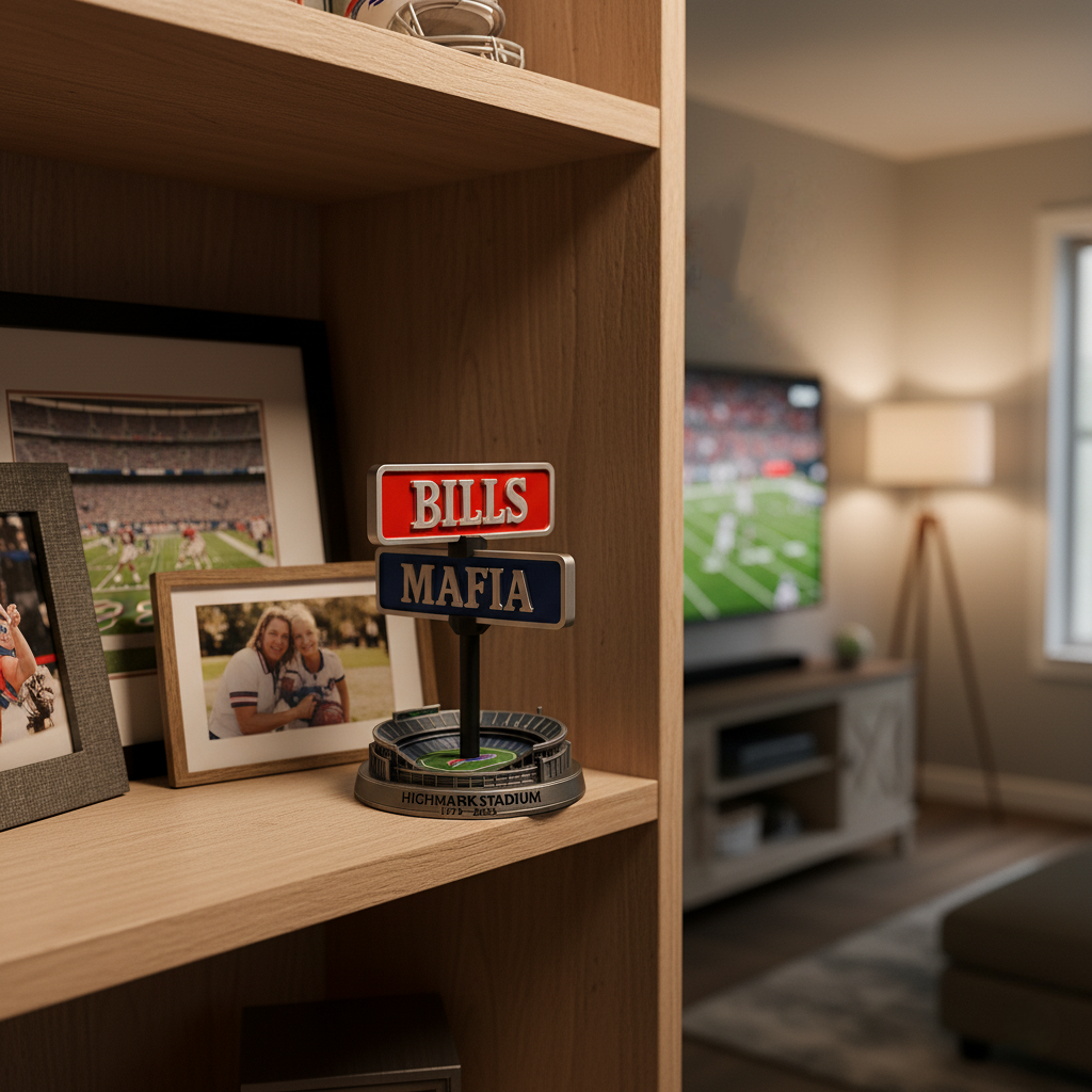 Crafted with precision and passion, this model captures everything that defines the Bills Mafia — loyalty, energy, and unity — in a bold, sculptural display perfect for your desk, shelf, or game-day collection.