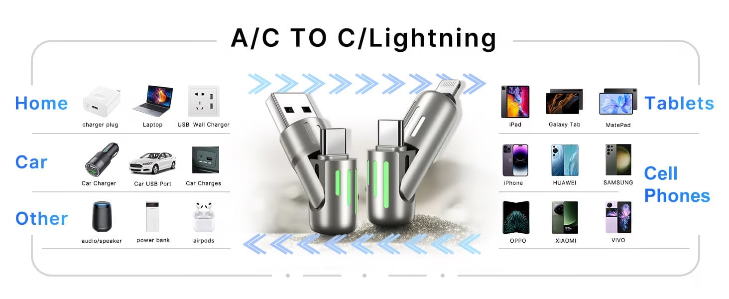 Charge your devices faster than ever with the 4in-1 USB C Cable 60W.