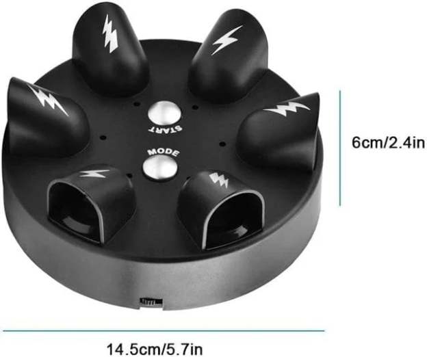 - Players put their finger in the small bucket, and the indicator light turns randomly. When the buzzing sound stops, one of the players will be hit by the virtual current.