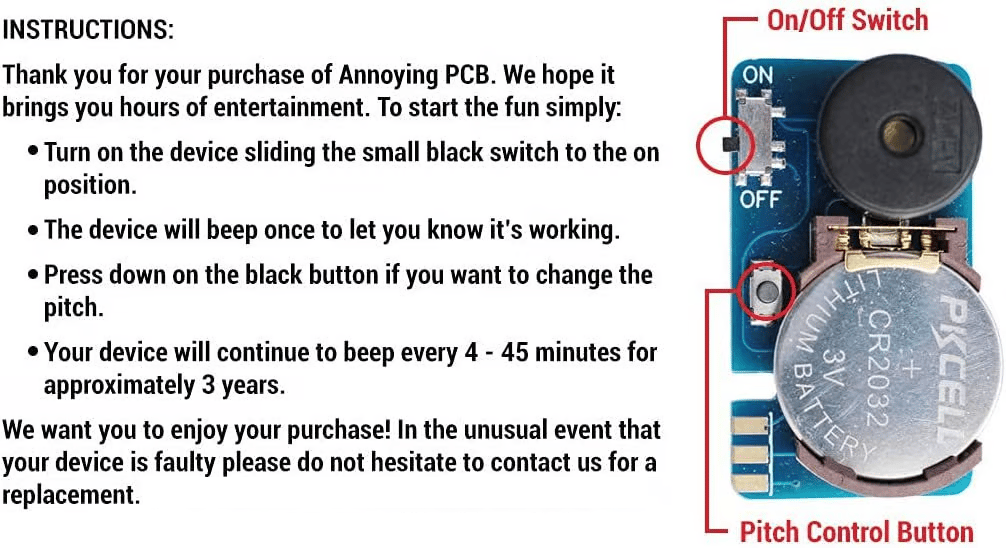 It Includes Multiple Sounds, Cricket Chirp, Beep & More, It is suitable to prank friends, co-workers or partners, especially those who are creeped out or really annoyed by insects.