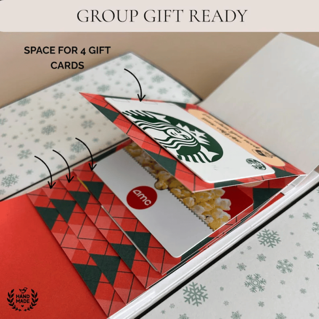 This handcrafted Christmas gift card booklet transforms an ordinary gift card into a delightful unboxing experience. It’s not just a storage case—it’s an exquisite wrapper and a cherished holiday memory all in one.