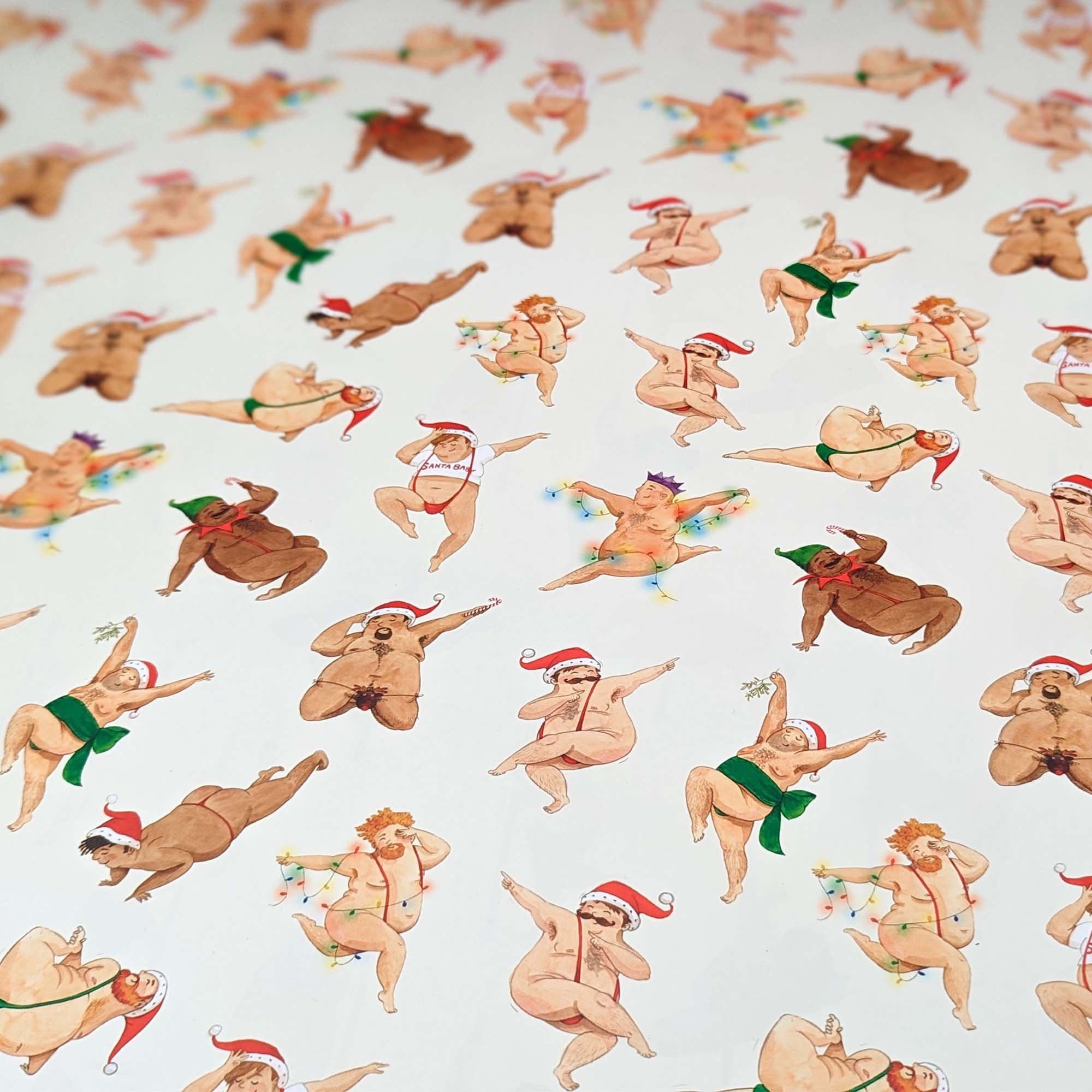🎁💃 Funny Men Dancing Christmas Wrapping Paper.Because nothing says “holiday spirit” like semi-naked men in Santa hats.