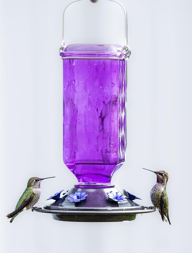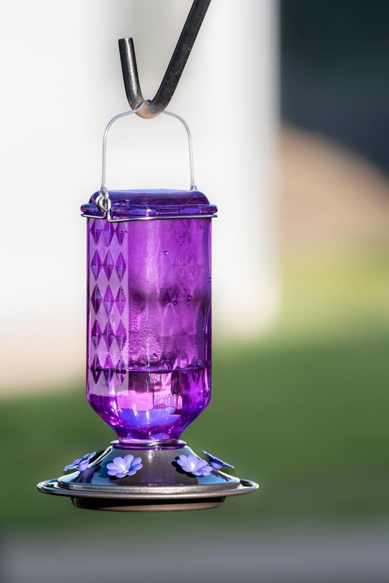 【Attractive Design】 High quality nectar glass containerin nice shape, 6 flower shaped feeding ports withperches to accommodate multiple hummingbirds.Beautiful colors available to choose.