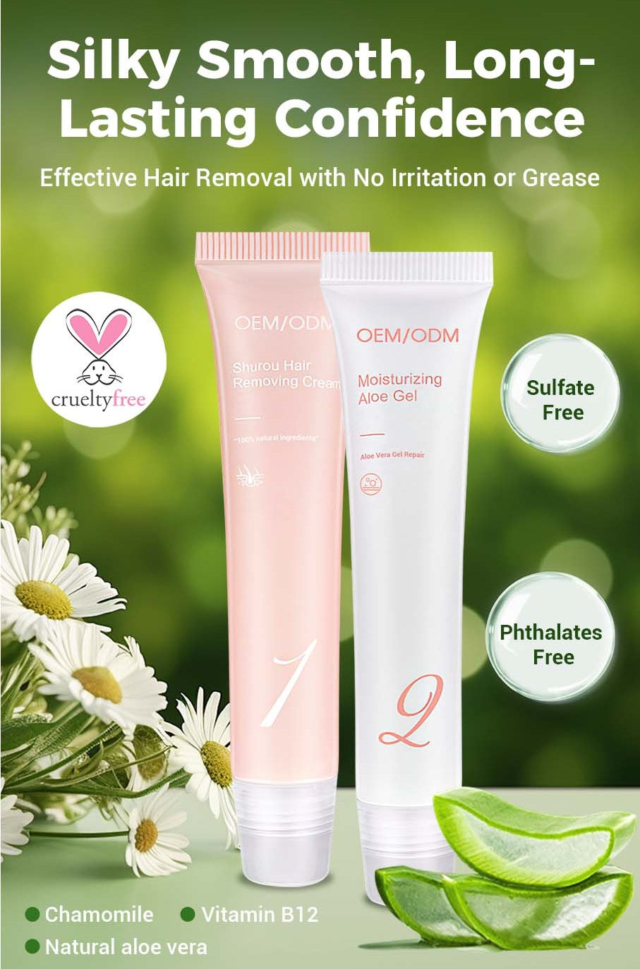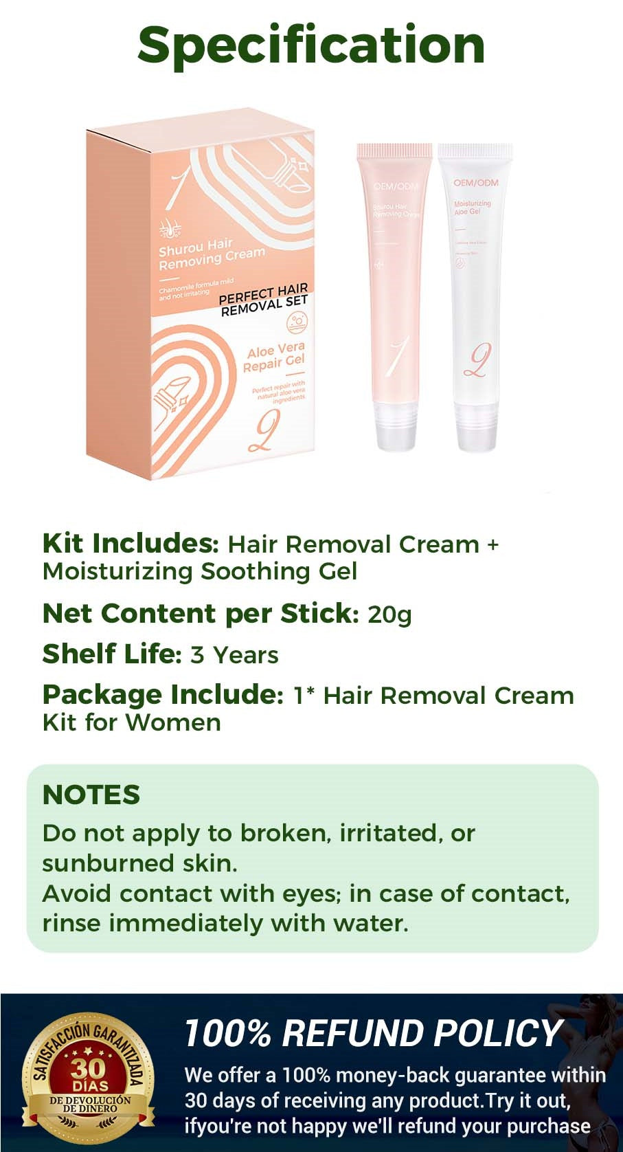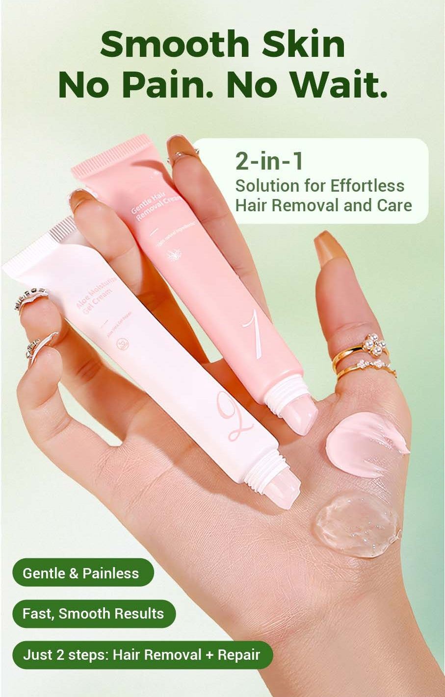 COMPLETE KIT FOR CONVENIENCE: The kit includes everything you need for effortless hair removal and skincare: Hair Removal Cream for fast results and Moisturizing Soothing Gel to hydrate and calm the skin post-treatment.