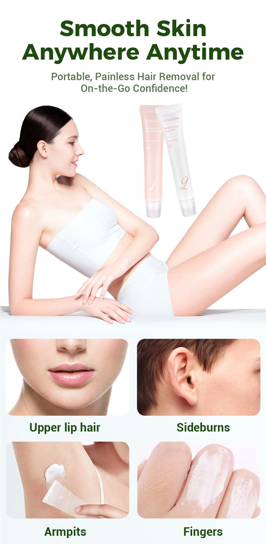 QUICK AND PAINLESS HAIR REMOVAL: Achieve smooth, hair-free skin quickly! This hair removal cream is perfect for sensitive areas like the upper lip, thick eyebrows, fingers, and fine peach fuzz, offering painless results.