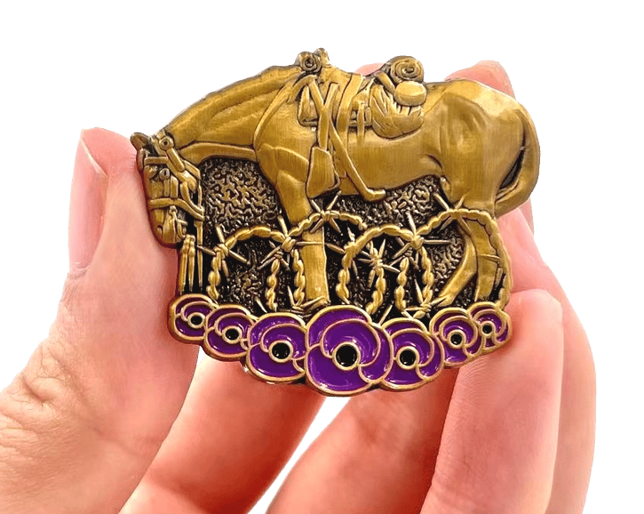 Our War Horse Brooch is a tribute to the horses who stood as silent, steadfast heroes alongside our soldiers. It serves not only as a symbol of remembrance but also as a tribute to every animal that served, suffered, and was forsaken during and after the war.