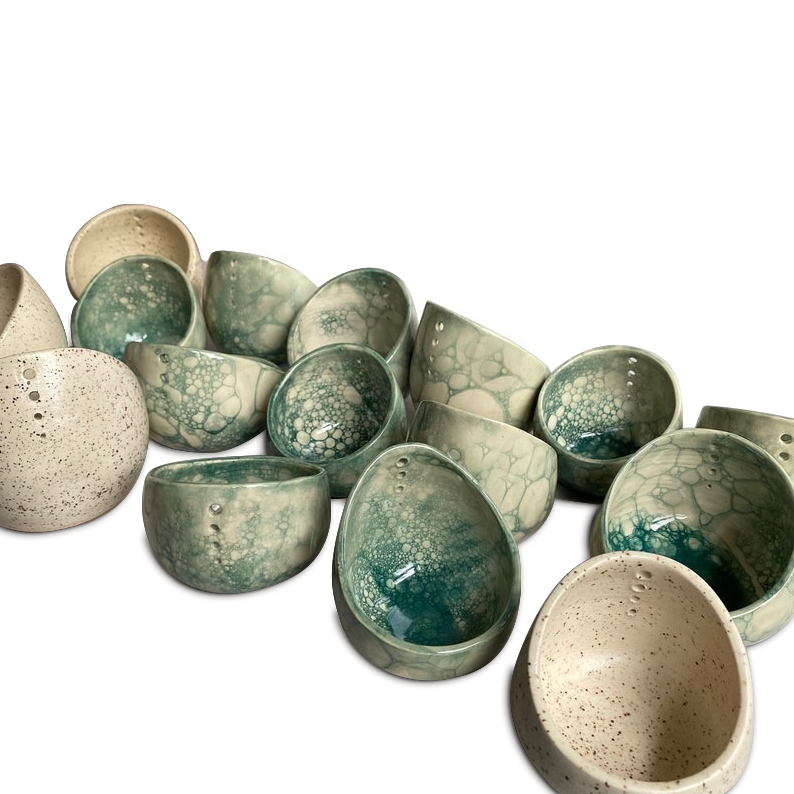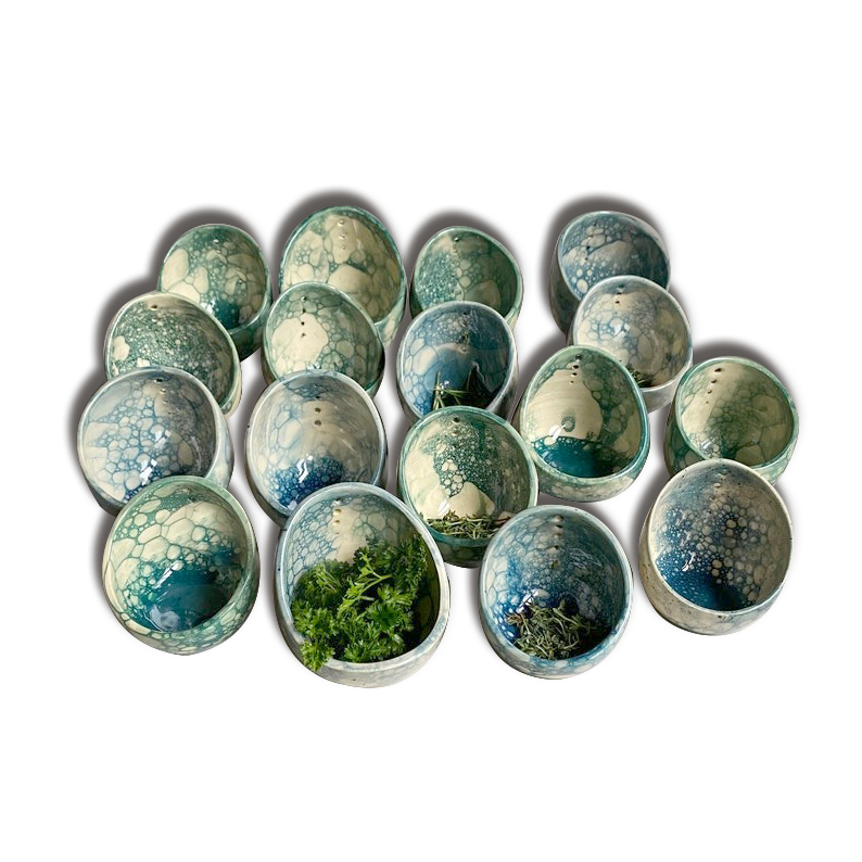 Wheel thrown and hand carved herb stripper bowl. You pull a stem of fresh herbs through the holes on the bowl to separate the leaves from the stalk.