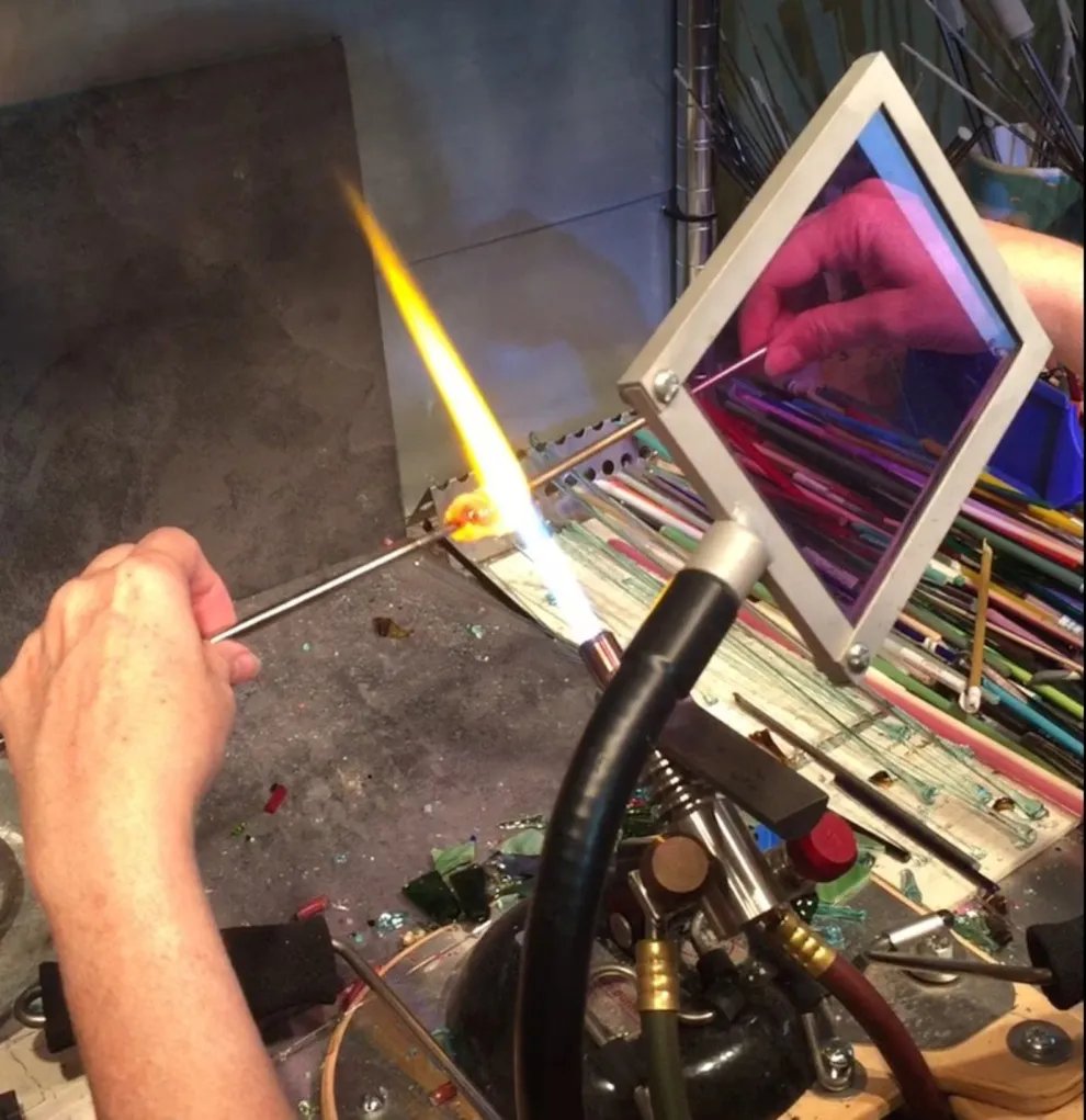 I have melted down broken pieces of vintage glass, and transformed the glass into various shaped beads in my home lampworking studio.